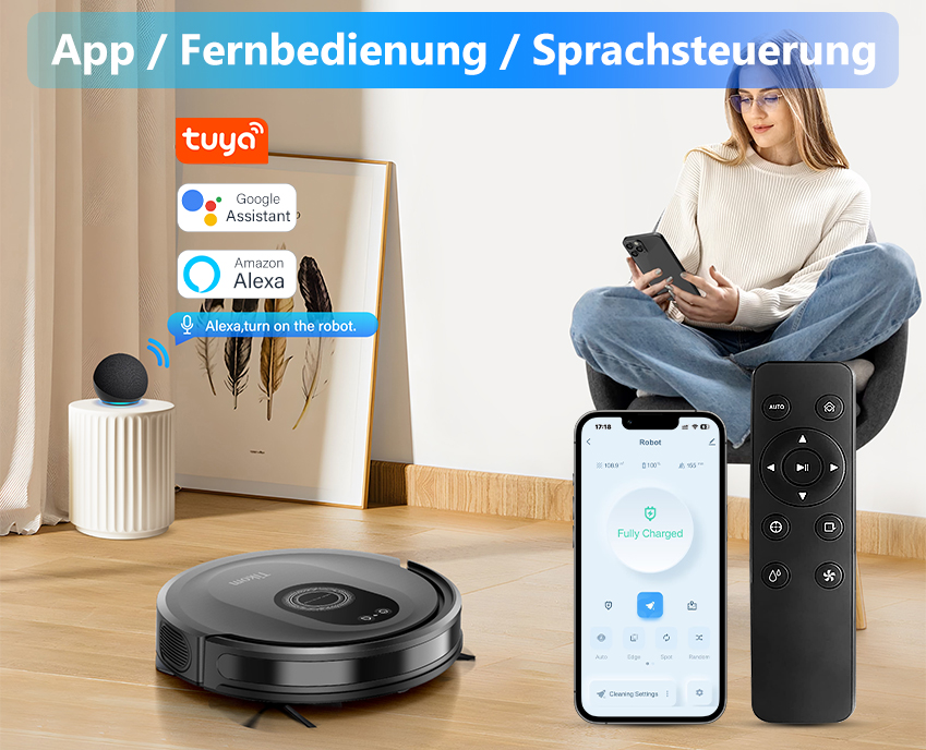 銆怉PP & Sprach- & Fernsteuerung銆 G8000 Max Saugroboter kann mit App kombinieren, einschließlich 5 Reinigungsmodelle: smart clean&edge clean&spot clean&rand clean&random clean&manual clean, kann auch mit Alexa und Google Home verbinden, und ist mit Fernbedienung ausgestattet.