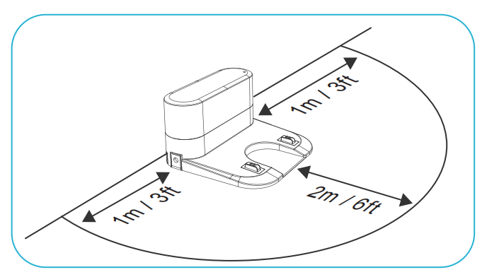 1. Entfernen Sie alle Gegenstände im Umkreis von 1 Meter (3 Fuß) links und rechts sowie 2 Metern (6 Fuß) vor der Ladestation.