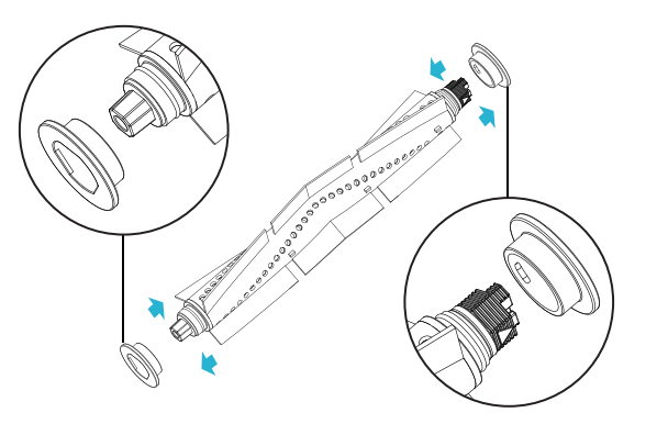 3. Öffnen Sie die beiden Kappen an den Seiten der Hauptb眉rste, entfernen Sie Haare oder Schmutz von beiden Seiten und reinigen Sie diese. Bringen Sie die Kappen anschließend wieder an der Hauptb眉rste an.