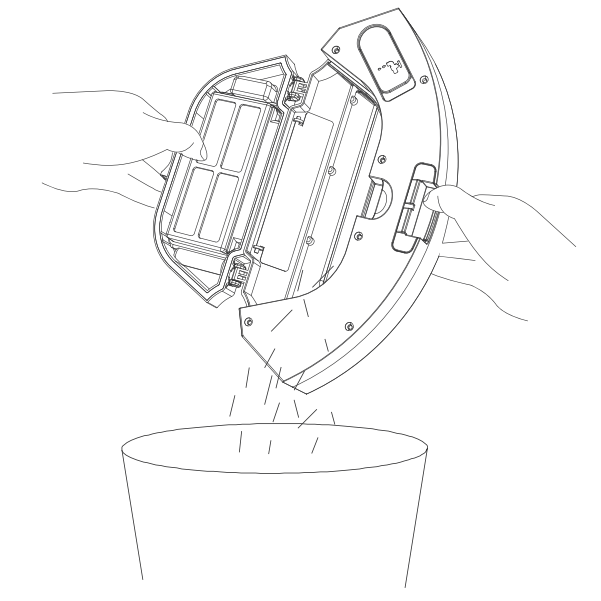 2. Dr眉cken Sie den Freigabeschalter am Staubbehälterdeckel, um ihn zu öffnen, und entleeren Sie den Staub in einen M眉lleimer.