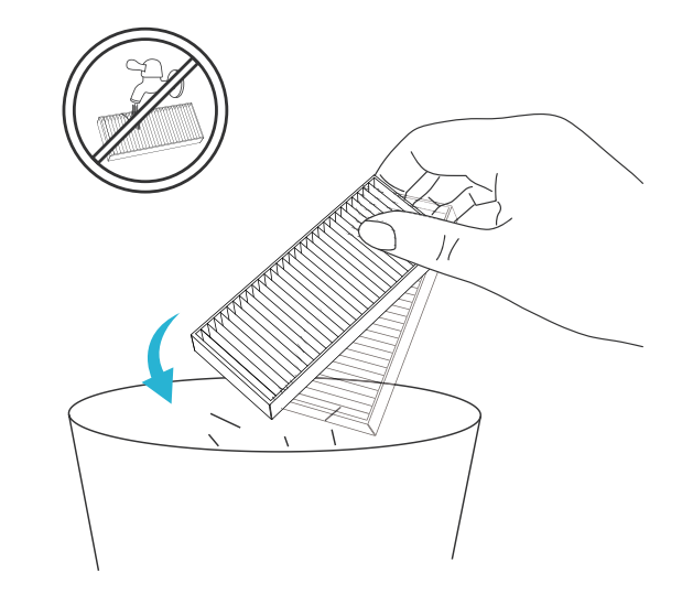 5. Klopfen Sie vorsichtig auf den HEPA-Filter, um den angesammelten Staub zu entfernen.