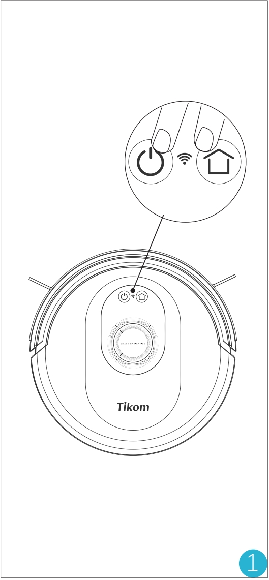 1. Halten Sie die Ein-/Aus-Taste und die Home-Taste am Roboter 3 Sekunden lang gedr眉ckt, bis ein Ton ertönt und das Wi-Fi-Statuslicht schnell blinkt.