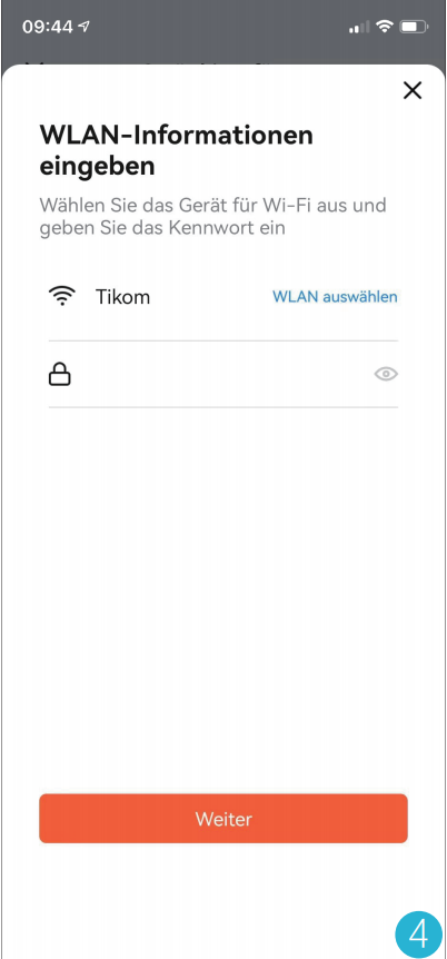 4. Wählen Sie das gleiche 2,4 GHz Wi-Fi-Netzwerk wie Ihr Mobiltelefon und geben Sie das Passwort ein. Tippen Sie dann auf „Weiter鈥.