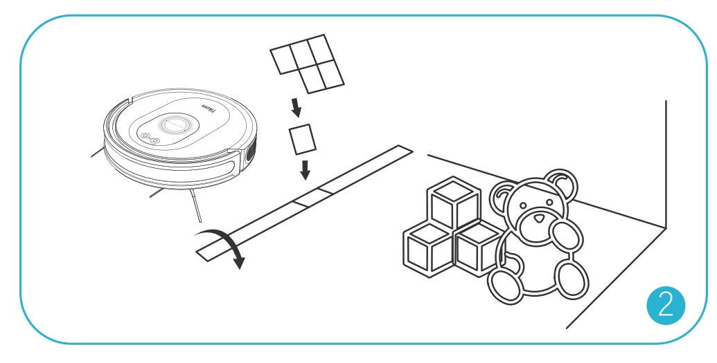 2. Stellen Sie sicher, dass der Streifen auf der gleichen Oberfläche wie der Roboter angebracht ist, um eine optimale Leistung zu gewährleisten.