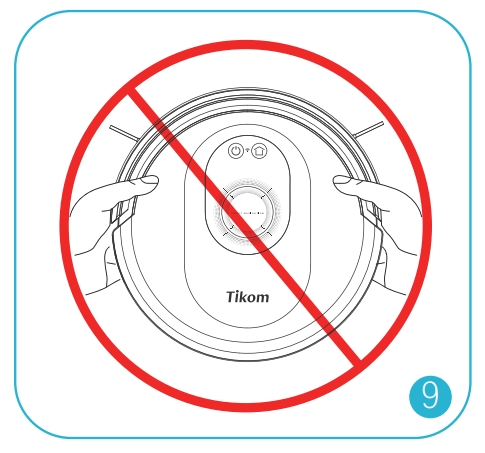 9. Heben Sie den Roboter während der Reinigung nicht an oder bewegen Sie ihn nicht, und verlegen Sie die Ladestation nicht, da dies die Mapping-Fähigkeit des Roboters und die R眉ckkehr zur Ladestation beeinträchtigen könnte.
