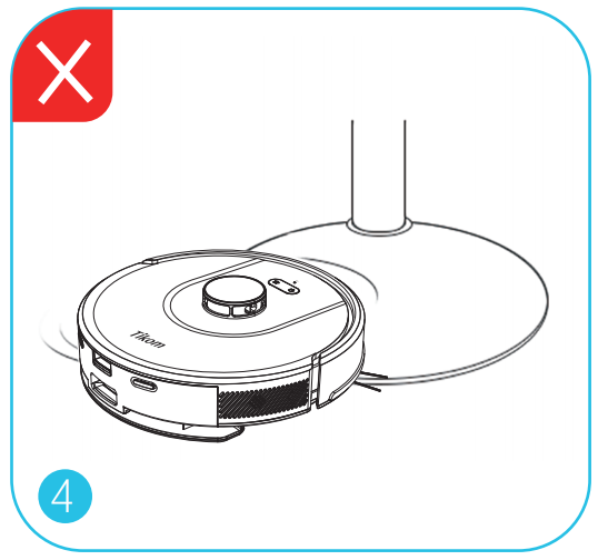 4. Die runden Basen bestimmter Barst眉hle, Tische, Standventilatoren und Stehlampen können die Kartierung und Navigation des Roboters beeinträchtigen.
