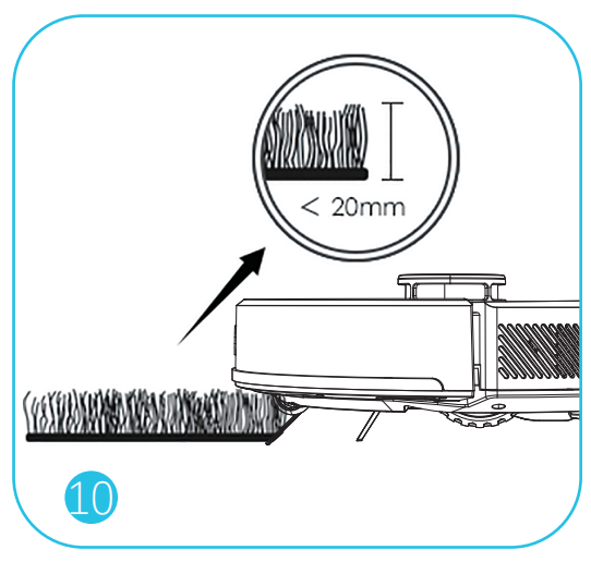 9. Der Roboter funktioniert möglicherweise nicht auf bestimmten dunklen, schwarzen Oberflächen, da die Anti-Dr眉ck-Sensoren, die eine Kante oder Treppe erkennen,