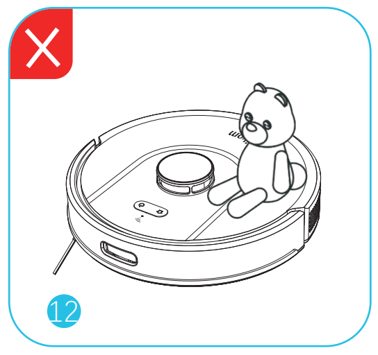 11. Während der Roboter reinigt, heben Sie ihn nicht an oder bewegen ihn nicht, und verschieben Sie auch nicht die Ladestation.
