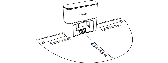 and recharge when the battery is low.ase remove objects within 1.6 ft / 0.5 m of the left and right sides, and within 4.9 ft / 1.5 m in front of the Self-Empty Base.
