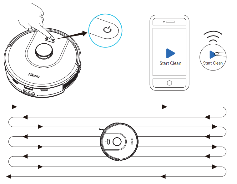 The voice announces “Start Sweeping and Mopping”. In this time, robot will sweep and mop in the same time.