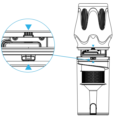 12. Push the dust cup toward the main unit until you hear a click, indicating that the dust cup is properly installed.