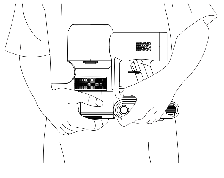1. Halten Sie den Staubbehälter mit einer Hand fest, damit er nicht herunterfällt, und st眉tzen Sie mit der anderen Hand den Akku ab.