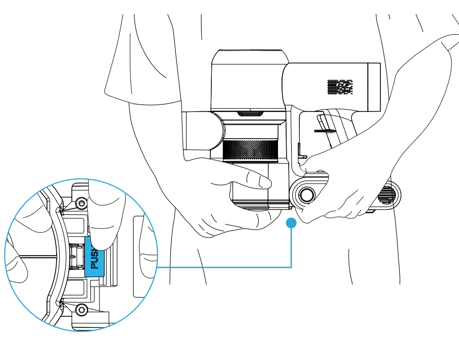 2. Dr眉cken und halten Sie die Entriegelungstaste f眉r den Staubbehälter mit der Fingerspitze.