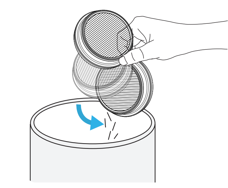 5. Klopfen Sie den HEPA-Filter kräftig ab, um den in den feinen Poren festsitzenden Staub zu lösen und den Luftstrom wiederherzustellen.