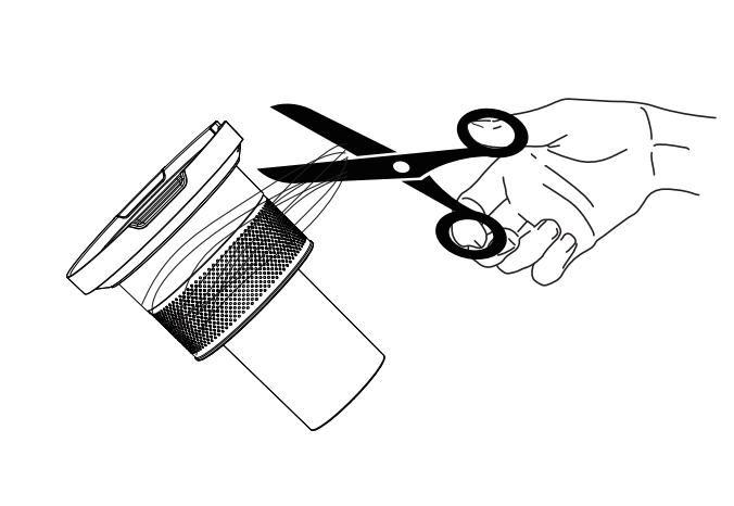 7. Schneiden Sie mit einer Schere alle Haare ab, die sich um die Zykloneinheit verheddert haben.