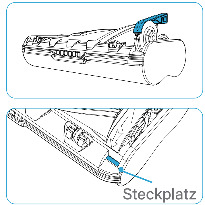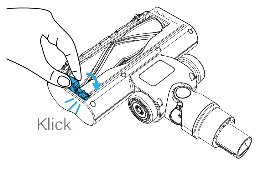 Dr眉cken Sie auf die Schnalle. Ein „Klick鈥-Geräusch zeigt an, dass die B眉rstenrolle sicher am Reinigungskopf befestigt ist.