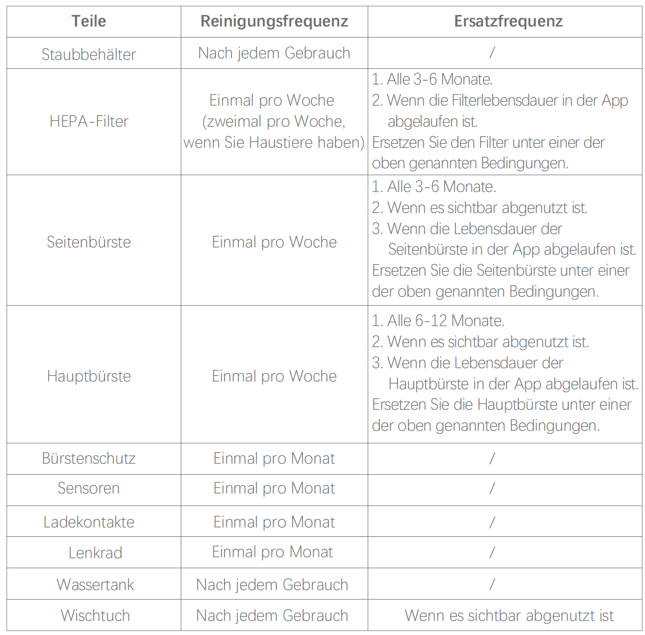 REINIGUNGS- UND ERSATZFREQUENZ [G8000Max]