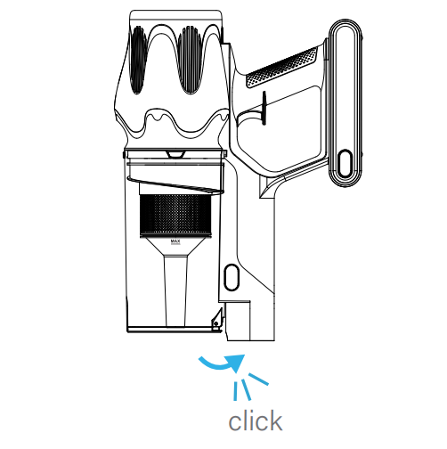 12. Push the dust cup toward the main unit until you hear a click, indicating that the dust cup is properly installed.